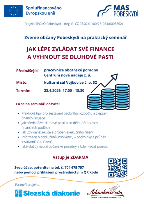 Úvod > Obec > Aktuality > Pozvánka na seminář - JAK LÉPE ZVLÁDAT SVÉ FINANCE A VYHNOUT SE DLUHOVÉ PASTI